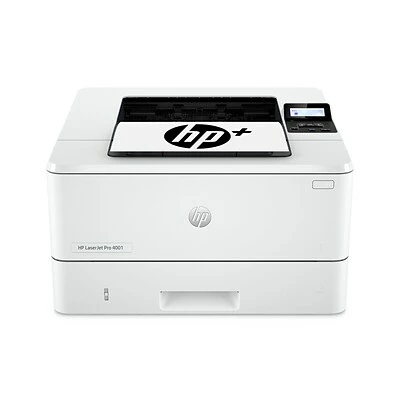 Get ultra-fast speeds and maximum productivity with the LaserJet Pro 4001dwe with HP+ included at no additional cost. Get laser quality black & white printing for all your business documents. Includes HP+ smart office features so you can set up and manage printers in multiple locations with a single dashboard. Never run out of toner with an optional subscription for Instant Ink for lasers.