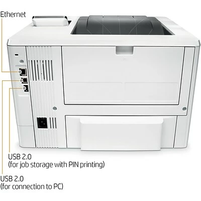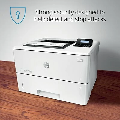 Loaded for productivity. From print speeds of 45 pages per minute (ppm) to 2-sided prints at 36 impressions per minute, the HP LaserJet Pro M501dn will keep your busy office moving. Get your first page from sleep mode as in as few as 7.3 seconds, and load the input tray with up to 650 sheets of paper. No matter how you choose to save time, this HP black and white laser printer will help you stay productive. Energy efficient with unmatched defense. From first in class energy efficiency to ENERGY STAR, Blue Angel and EPEAT Silver certifications, this HP LaserJet printer is sure to save on power while delivering top-notch protection. Enable PIN authentication to secure print jobs, or use optional HP JetAdvantage Security Manager to employ policy-based protection for printing resources. Connect and print with ease. Connect to your local network and share resources with built-in Ethernet, or print from your smartphone with Apple AirPrint, the HP Smart app, and more with the HP LaserJet Pro M501dn. Whether you’re at your desk or on the go, easily print and stay on track. More. Pages, performance, and protection. Bring out the best in your HP monochrome laser printer. Get reliable performance and outstanding quality using Original HP 87A toner cartridges with JetIntelligence. And get extra value with optional high yield cartridges that produce more pages per cartridge than standard.
