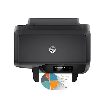 Give charts, reports, and forms a professional look with this color inkjet printer. The pigment-based ink system brings vibrant color to images and text, and print speeds of up to 22 pages per minute for monochrome documents mean shorter waits for jobs to complete. This printer comes with built-in Wi-Fi and wired Ethernet, so you can enjoy a dependable connection whether working from home or the office. Use the Hi-Speed USB host to print PowerPoint, Word or PDF documents from a flash drive, or use the mobile connectivity to send tasks directly from a smartphone or tablet. A 2-inch display and intuitive keypad make it easy to navigate through all available functions. Featuring a host of security management options, including a control panel lock and password protection, this HP OfficeJet Pro inkjet printer helps keep proprietary information safe.