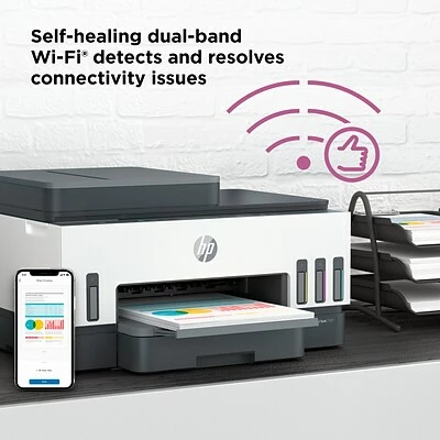 The HP Smart Tank 7301 makes printing seamless from start to finish for the whole family with a high-capacity ink supertank, automatic document feeder and wireless and Ethernet connectivity. Create outstanding-quality color documents at a low cost with up to two years of Original HP Ink included in the box.