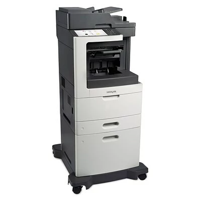 The Lexmark MX810dxfe MFP with a customizable e-Task touch screen, staple finisher, 2,750-sheet standard input, 1GB of standard memory and 160+GB hard disk provides print, copy, fax, scan and email functions.
