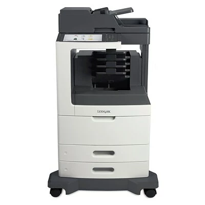 The Lexmark MX812dme MFP with a customizable e-Task touch screen provides print, copy, fax, email and scan functions. Included are a 4-bin mailbox, 1,200-sheet standard input, 1GB of memory and a 160+GB hard disk.