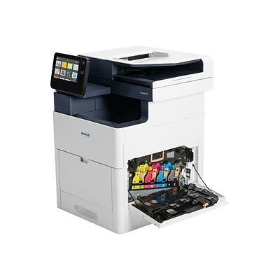 Make short work of high-volume printing, scanning and copying tasks with this multifunction color laser printer. Featuring a 1.05GHz processor and 4GB of print memory, this laser printer provides responsive user experience and easily handles complex documents with large images. Print speeds of up to 45 pages per minute make tackling high-volume tasks easy, while the 550-sheet input tray and automatic duplex printing improve performance by reducing paper consumption and refill frequency. The integrated scanner and 100-sheet automatic document feeder let you digitize records without manual feeding, which is ideal for tackling large scanning jobs. Featuring a high-resolution copier, this laser printer makes it easy to produce significant numbers of accurate, smudge-free copies. This Xerox VersaLink printer offers easy in-person operation with a responsive color touch display and lets you queue up jobs remotely using integrated Base-T Ethernet connectivity.