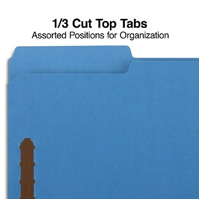 These blue folders from Quill are not just fun to look at; they are also strong enough to keep your company’s files safe and sound. The tab edge of each folder is reinforced for extra strength, making it able to withstand constant searches through the file cabinet. Two fasteners work to bind the folder together.