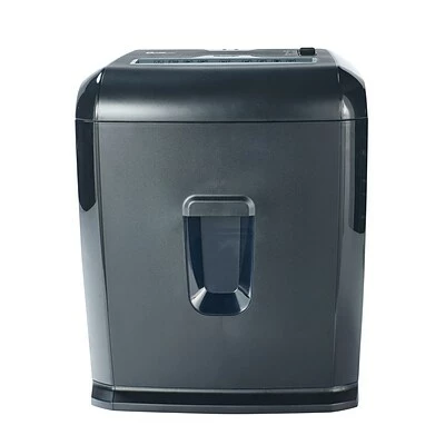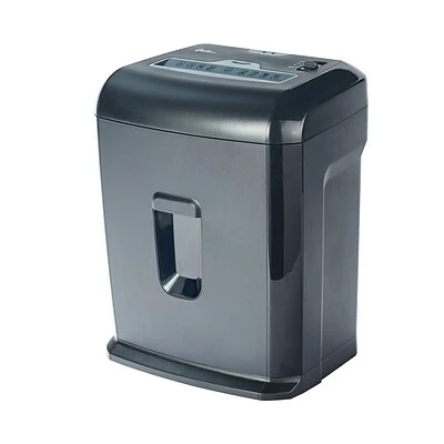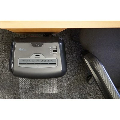 Shred quickly and securely with this Quill brand paper shredder. The compact design fits into small offices and cross-cuts paper to properly dispose of highly sensitive documents. Tackling up to 10 sheets at once and cutting through paperclips and credit cards, the shredder offers versatile function for homes and small businesses. Auto start and stop streamlines tasks, and a lockout key disables the blades for safe use around kids. The roomy waste bin lets you finish big jobs in one go.
