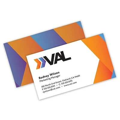 Printed on two sides on a 14 pt. white stock with a semi-gloss finish on both sides
