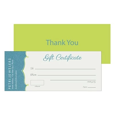 8.5″ x 3.5″ gift certificates with a horizontal orientation.