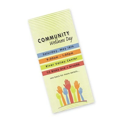 Printed on one side on a 14 pt. white stock with a semi-gloss finish on both sides and an added UV high-gloss coating on the front side