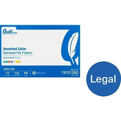 Use Quill Brand legal-size file folders to protect paperwork. With assorted colors, these folders offer a convenient system for separating types of files.
