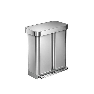 The simplehuman dual compartment stainless steel rectangular step can makes it easy to neatly sort your trash and recyclables in one convenient, space-efficient receptacle.
