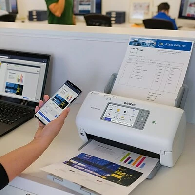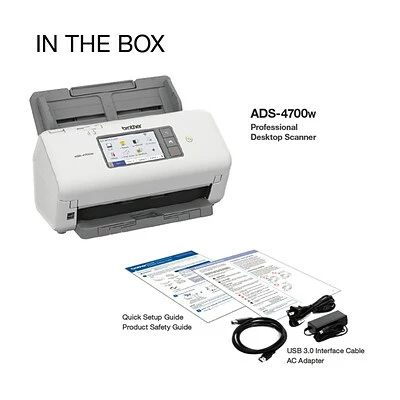 The Brother ADS-4700W professional desktop document scanner with Ethernet and wireless connection is an essential component of an optimized fleet.