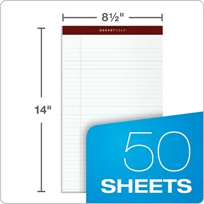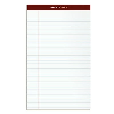 TOPS Docket Gold legal-ruled white perforated notepads contain sheets that are easy to remove as you proceed through your meeting. A 60-point chipboard back provides a steady surface that’s particularly convenient when you don’t have a table or desk in front of you. Legal-ruled lines let you organize your handwriting effectively, giving you plenty of room for large letters or leaving enough white space to separate sections.
