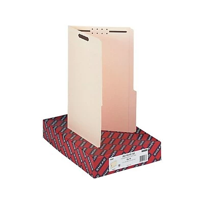 Choose these Smead reinforced manila fastener folders for subdividing files. These folders feature reinforced 2/5-cut tabs to provide durability for daily paging, and the files are available in boxes of 50, so you can easily stock up your filing system. These Smead reinforced manila fastener folders each have two fasteners to hold documents securely and help subdivide them into multiple groups.