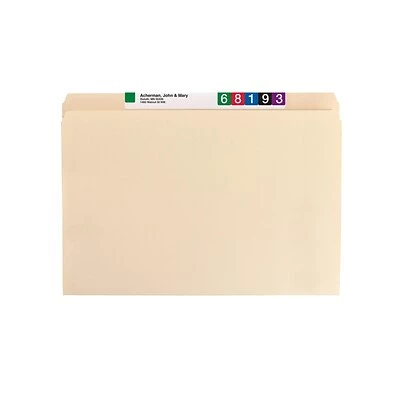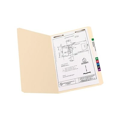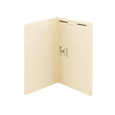Bring order to client, customer or account paperwork with these legal-size manila file folders. The reinforced tab construction withstands everyday wear and tear for long-lasting use, while the embedded fastener holds documents securely in place. A full-length straight-cut tab layout offers ample room for color-coded letter and number filing systems. These Smead one-fastener manila file folders accept legal-size documents for easy filing.