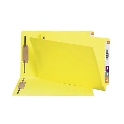 Keep large files and numerous documents organized with this 50-count box of Smead fastener file folders. The two fasteners on each folder provide two filing surfaces to separate notes or drafts, and the straight-cut tabs supply ample space for long file names. The 11-point material of these Smead fastener file folders is durable enough for years of use and transporting paperwork in and out of the office.