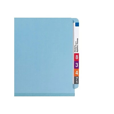 Make large files easier to browse with these legal-size classification file folders. The SafeSHIELD fasteners protect you from cuts while holding papers secure, and the 23-point pressboard material offers added durability. These Smead SafeSHIELD end-tab classification file folders have two dividers that work with the fasteners to provide six filing surfaces, so even the largest files become manageable.
