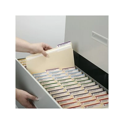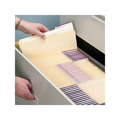 Store and subdivide your documents with these Smead manila file folders. The easy storage solution features reinforced tabs for extra strength, while a 1/3-cut design allows for convenient color-coding and indexing. The assorted tab positions mean multiple interior file folders can be used within a single hanging file folder. These Smead manila file folders have rounded corners to help prevent snags and tears.