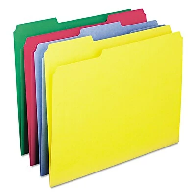 Customize your filing system with this 100-count box of Smead file folders. Durable standard thickness paper stock protects documents in storage or transport and stands up to daily use, and the paper is sourced through sustainable forestry to be environmentally conscious. The vivid shades of these multicolored Smead file folders let you color-code files to store and locate information quickly.