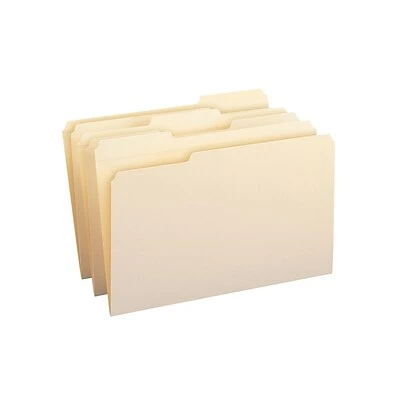 View file titles easily with these reinforced 1/3-cut assorted tab file folders. With 100 in a box, these folders are perfect for stocking up your supply or taking on big filing projects, while the two-ply tabs offer increased strength for long-term use. These Smead legal-size manila file folders are made from durable 11-point stock, providing enhanced protection for documents against moisture, dirt and other damage.