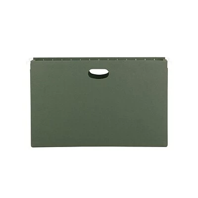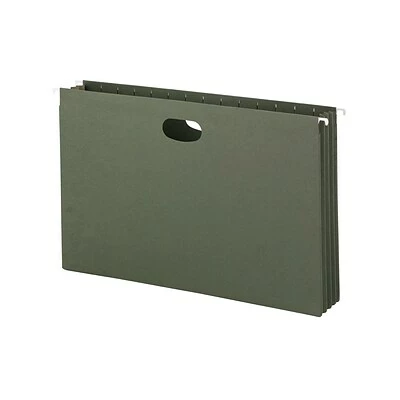 Keep large sets of paperwork together by using these legal-size hanging file pockets. Sold in a box of 10, these pockets can easily reduce clutter around the office, home, or classroom. These Smead standard-green hanging file pockets are made with a durable bottom and sides, keeping documents contained and preventing them from slipping out when removing the pocket.