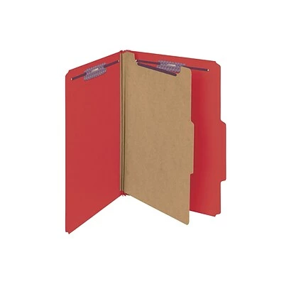Manage thick, complex files with these Smead pressboard classification file folders. Each folder has a divider and four fasteners to hold documents and divide them into major categories, while the 23-point pressboard material ensures that folder contents are protected. These Smead pressboard classification file folders are bright red, making them an ideal addition to any color-coded filing system.