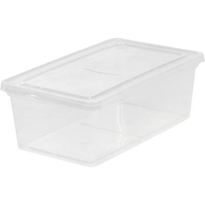 This Iris classic storage box has a perfect size for shoes, small accessories, and more. The snap-tight lid stores your items securely, and the ultra-clear body allows you to easily see what is stored inside. Stack these boxes together to maximize the use of any storage space.
