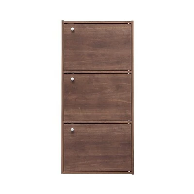 Streamline your space with this three-tier shelf that neatly hides away clutter behind sleek, magnetic-close doors. Perfect for use in Kitchen, bedroom, living room, office, or any room that could use discreet storage. Assembly Required. Weight Tolerance: 44 lbs per shelf, 176 lbs overall. Inner cube dimensions 15.35″ W x 10.2″ D x 10.8″ H