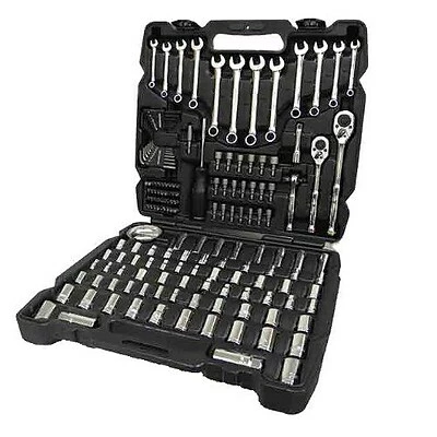 Includes 0.25″, 0.375″, 0.5″ 72 teeth ratchets, 20 x 0.25″ sockets, 35xstandard & deep 0.375″ sockets, 12 x 0.5″ sockets, 2xspark plug sockets, 3″ extensions, magnetic bit driver, 40 x Phillips, slotted torx®, pozi, square & hex driver bits