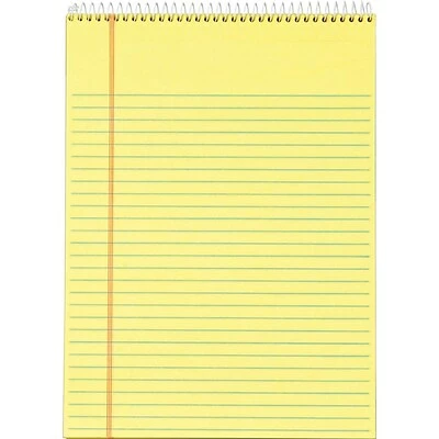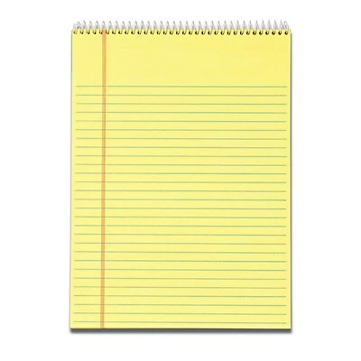 Jot down your lists, ideas and notes on this TOPS writing tablet. The letter-sized canary yellow sheets are legal ruled for compact note taking. The wire spiral binding gives you a convenient place to store your favorite pen or pencil for easy retrieval, and the Letr-Trim perforated top makes tearing each sheet clean and easy. Each Docket writing tablet features a durable chipboard backing that gives you a sturdy writing foundation, and the letter size stores in a standard folder or drawer.