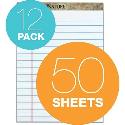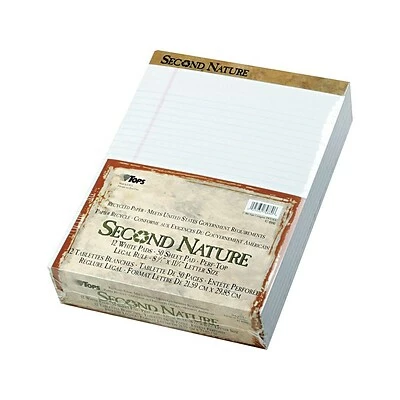 Ensure that you always have a convenient writing surface on hand when you stock your supply cabinet with this 12 pack of notepads. Offering a versatile white color, this TOPS Second Nature legal notepad is perfect for home, office or school use. With 50 sheets per pad, these notepads provide plenty of room for recording class notes or business ideas.