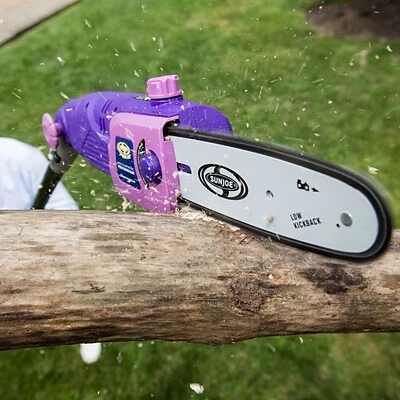 The Sun Joe® SWJ802E pole chain saw takes the danger and difficulty out of trimming your overgrown trees. At only 7.9 lbs, the Sun Joe SWJ802E is super lightweight and easy to handle. Stand safely on solid ground and extend its telescoping pole to gain up to 15 feet of overhead reach. Powered by a 6.5-amp motor, the SWJ802E can handle the most stubborn tree limbs up to 7.5-inches thick. This pole chain saw features an 8-inch Oregon bar and chain with an auto-oiler to keep the bar and chain fully lubricated during use. Unique to SWJ802E is a multi-position adjustable head, which cuts from 0º to 30º angles. Unlike gas-powered tools, the Sun Joe pole saw is powered electrically, so you’ll reliably power up with the push of a button without having to deal with smoke, fumes, unpredictable starters or costly tune-ups. Plus, SWJ802E comes equipped with a built-in safety switch to prevent accidental starting.